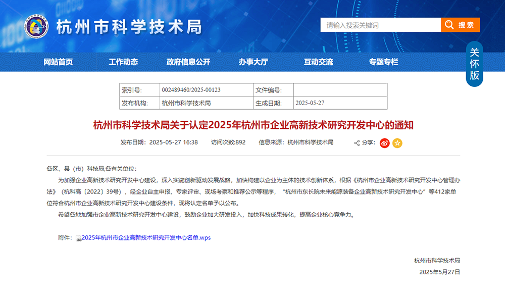 近日,由浙江省环保集团生态环保研究院有限公司创建的“杭州市生态环保低碳数智资源循环企业高新技术研究开发中心”,成功入选2025年杭州市企业高新技术研究开发中心名单,标志着生态环保研究院在科技创新领域取得重要突破,迈入新的发展阶段。