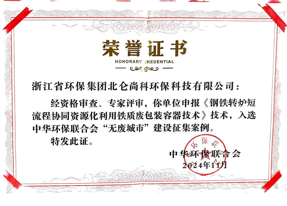 中华环保联合会无废城市建设征集案例证书